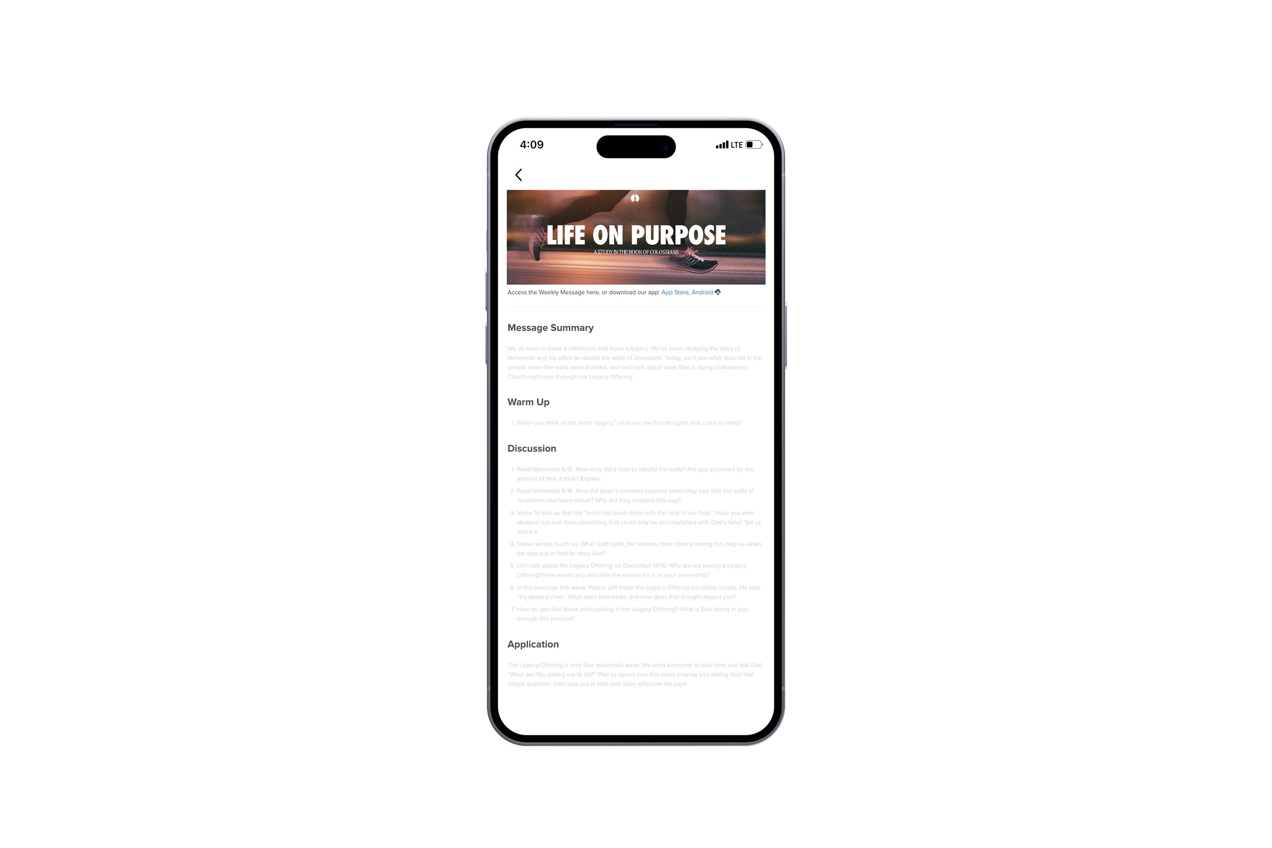Your Leader Guide is available through the Milestone Church app. You'll be able to access the small group questions and everything you need to lead your group.
